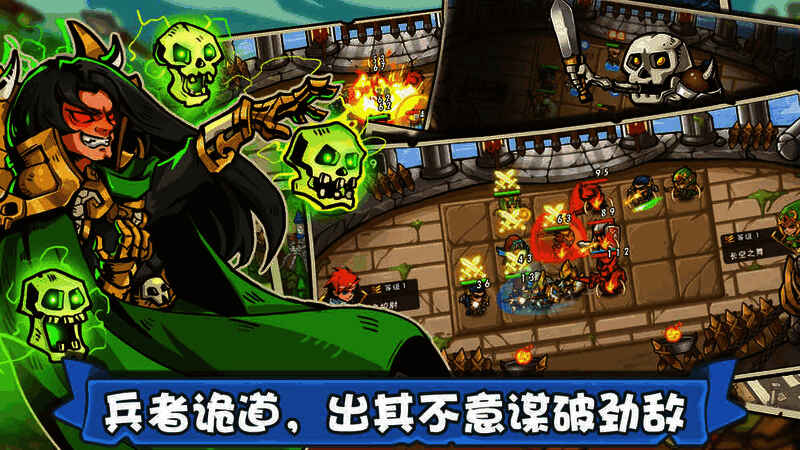 2、兵种进阶多样:五种职业进阶,针对不同敌人选不同角色攻击,技能组合衍生更多策略。