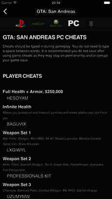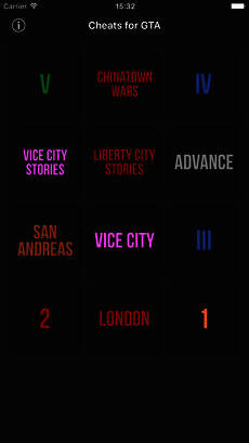 《Cheats for GTA》专为GTA游戏而生,用户可以在这里查询到侠盗猎车手全系列的作弊码。不用再去网上苦苦百度啦,点击软件内对应的游戏图标,就能够轻松找到你需要的作弊码,快来下载吧。
