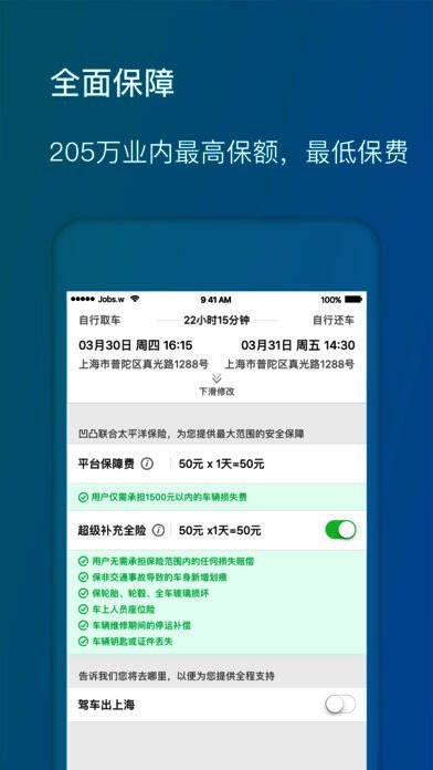 4、【高额保险】:太平洋保险入股,提供业内最高205万租车险和全时况道路救援。