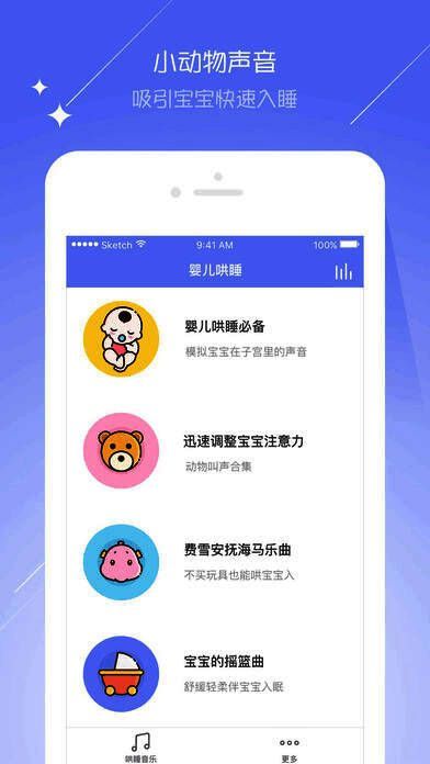 为吸引宝宝注意力,使其安静下来,软件选取生活中常见小动物的温和声音音效。专家分析婴儿哭声发现,这类温柔的声音能快速止住宝宝哭声。