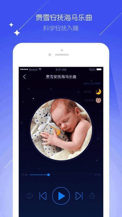 软件选取全球销量领先的“费雪安抚海马玩具”中的经典乐曲,非常适合协助 6 - 12 个月的宝宝入睡,音乐如同安抚精灵,伴宝宝进入梦乡,比故事大全更有效。