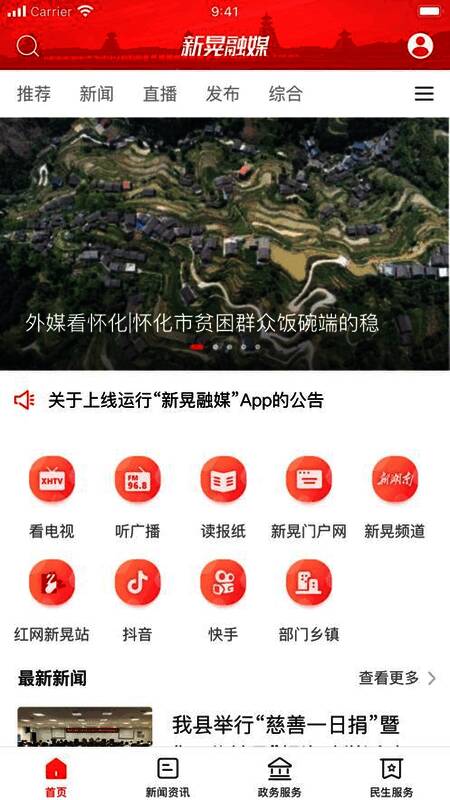 新晃融媒APP是一个新闻资讯服务平台,通过它能了解当地民生热点、文化旅游等信息。它为当地居民构建了一体化综合服务信息平台,有助于发掘民生情况,为市民提供更高效的生活和便利服务。