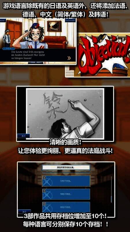 1. 强大品牌保障:《逆转裁判》系列是CAPCOM的知名之作,品质和口碑获玩家认可,《逆转裁判123成步堂精选集》在移动平台推出备受期待。
