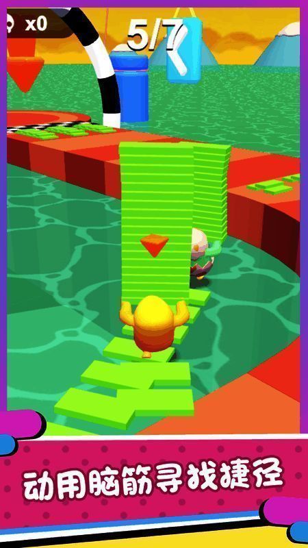 通过灵活操作,操控赛道上的小人迅速收集更多砖块,从而顺利通过各种机关陷阱。
