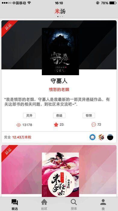 《米汤免费小说》,为你带来永久的正版免费阅读体验!它突破传统单一阅读模式,开创了大神与粉丝间的互动阅读新玩法。全新社区系统,增添互动时可爱的动态效果,这里是众多大触粉丝的温馨家园。