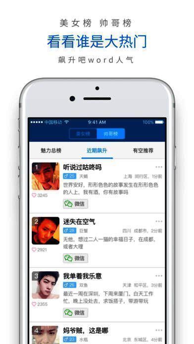 1、可查看有空聊天的人,支持按性别、年龄等筛选,比漂流瓶更灵活;2、能直接复制对方微信号等方便添加;3、可赞一下求聊天;4、能更新状态告知大家自己有空;5、可设置有效期避免被骚扰;6、能一键举报不良信息。
