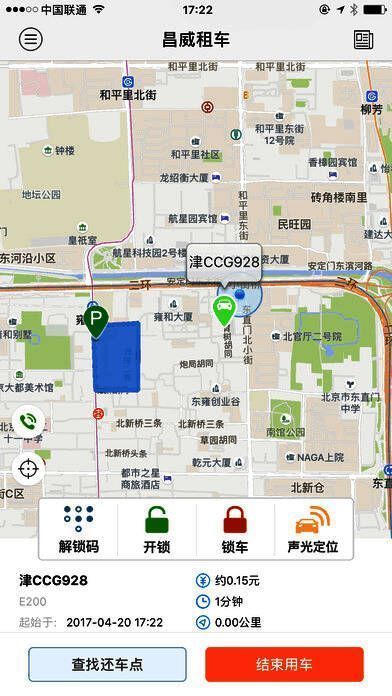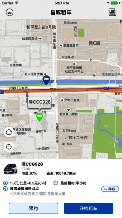 2、借助“昌威汽车共享”自助租车系统,用户能查看周边闲置电动汽车,通过APP自助完成取车、还车和费用结算等操作,无需人工干预。