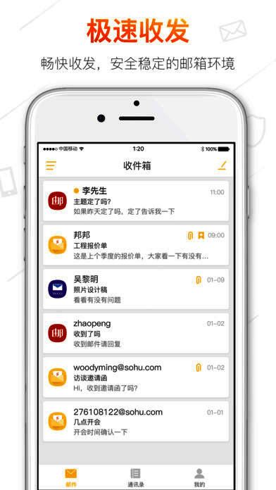 搜狐邮箱 app 是搜狐旗下搜狐闪电邮邮箱的专属手机客户端,也就是手机上的搜狐邮箱客户端。使用它,用户能更便捷地随时随地查收、预览邮件,及时回复重要的工作和私人邮件,让工作与生活更便利。
