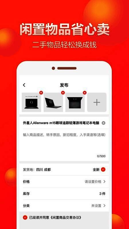 2. 除贴身物件外,各类物品包括全新产品都能在平台发布售卖。
