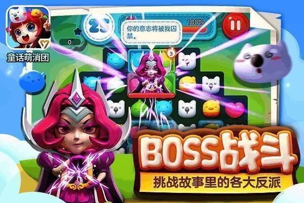 【创新策略三消玩法,百种消除特效自由组合】首款战斗童话消除手游安卓正式开启公测!在《童话萌消团》里,玩家需要考虑的不仅仅是三消,还有道具的运用、英雄技能的释放,以及各种各样的童话怪物和BOSS。为了还原真实的消除体验,玩家可以通过较高概率的四消、五消来获取强力战斗道具,不同的道具组合还能产生更为华丽的消除特效。每当消除一定数量的方块,就能够释放英雄技能,最厉害时可实现全屏攻击!