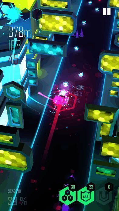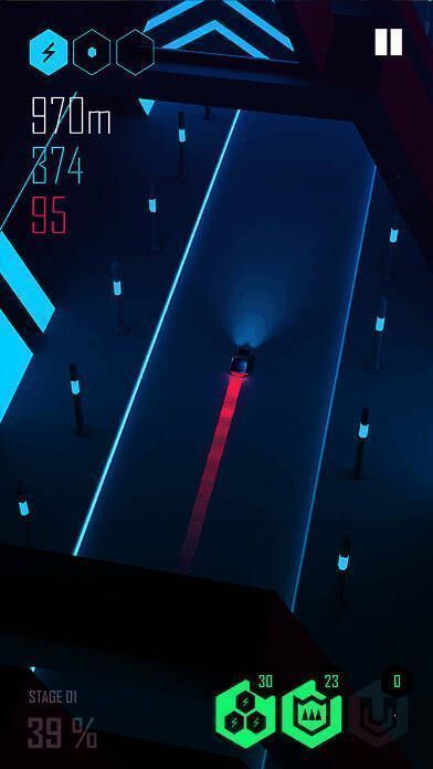 《节奏超跑》凭借炫酷的霓虹色彩和生动的场景令人眼前一亮。据Lila Soft透露,游戏深受电影《创:战纪》影响,其音效由电影原声带制作人Daft Punk打造,音乐品质极高。