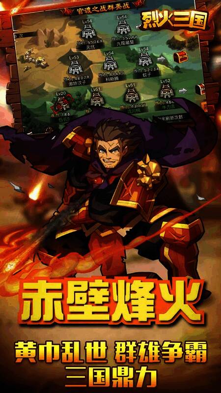 《烈火三国》由亚洲顶级画师精心绘制,IMAX级动画全屏特效带来最震撼的感官体验!数百英雄、多重特技,百变阵容能让军团混战的局面因你而改变!快带领你的军团开启守护之战吧!