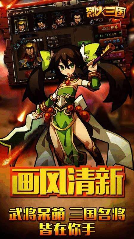1、华丽伙伴阵容 超过50个三国武将可供招募,英勇无畏的猛将、足智多谋的军师、运筹帷幄的统帅任你挑选。
