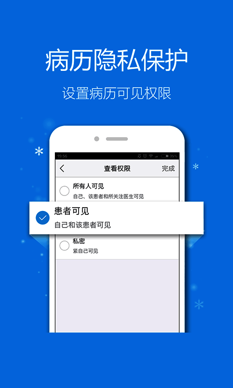 易随诊搭建了一个平台,提供满足医患双方沟通需求的严肃服务。患者借助易随诊云平台,可通过手机拍照等方式轻松存储各类病历档案,还能按需与首诊医生长期保持联系,实现随时在家问医、随时预约加号、随时进行自我健康管理;医生通过该云平台可获取院外临床数据,科学高效地管理患者,提升服务价值。