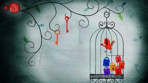 故事起始于一只被困囚笼的小鸟,囚笼上挂着赤、橙、黄、绿、粉、蓝、紫七把锁。玩家需在插画中四处探索,进入各个冒险区域,解开谜题以寻得钥匙,救出小鸟,从而达成完美结局。