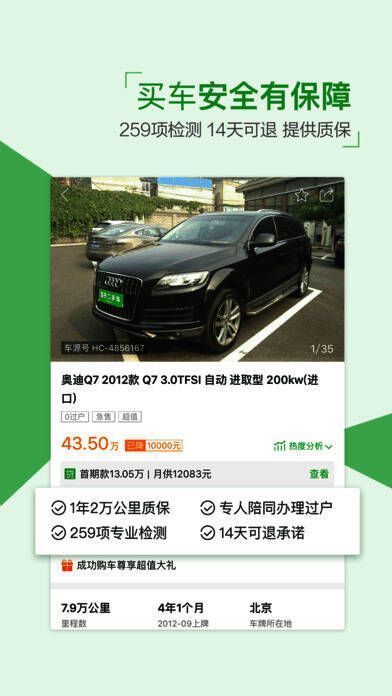 3. 提供30天无忧退车服务以及2年/4万公里质保,让您买车放心、用车安心。