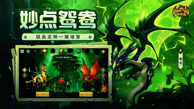 在育龙岛上,修炼可获得魔法世界强大的传说萌芽龙。能拜访朋友龙岛,用友谊之力帮其建造。还能和梦龙一起探索魔法世界,打开时空裂缝,踏上圣山,深入古老废墟与血腥竞技场。