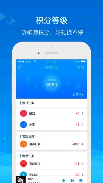 3. 超省流量:一键开启WiFi保护,不耗一分钱流量;支持WiFi下自动缓存,无网也能畅听;还有超值音乐流量包,订购可免流量播放、下载无限歌曲。