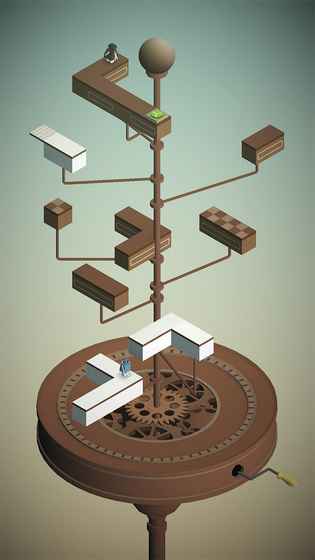 游戏画风延续了《纪念碑谷》的风格,但色彩不如《纪念碑谷》唯美,可能与故事梗概有关,场景多为暗色系,有略微陈旧破败之感。