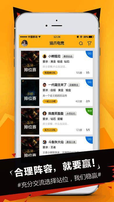 猫爪电竞作为国内首创的专业电竞服务平台,采用房间组队模式,助力电竞玩家寻觅到更适配、更专业的队友。平台汇聚国内顶尖高手,通过强带新的良性循环,提升国内玩家的电竞水平。