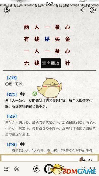《增广贤文听读》软件特色丰富:精心校对、无广告,支持苹果设备和各版本iOS系统;图文并茂,有高清诗意插图;所有汉字可查新华字典、展示书写动画;拼音可隐藏,界面是中国风;有名师和儿童朗诵,译文带语音,支持离线听读;具备注释、译文等多种内容;有320个励志小故事;可屏幕取词;配国学古典音乐;能随心收藏、后台和循环播放;可多渠道分享。
