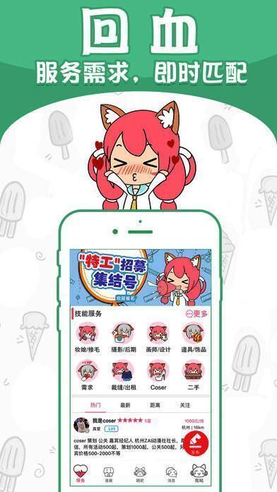 【回血服务需求】:涵盖cos绘画、道具摄影、cv妆娘、二手租赁等,一键分享技能,平台自动匹配,让你坐等订单,告别吃土烦恼。