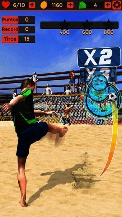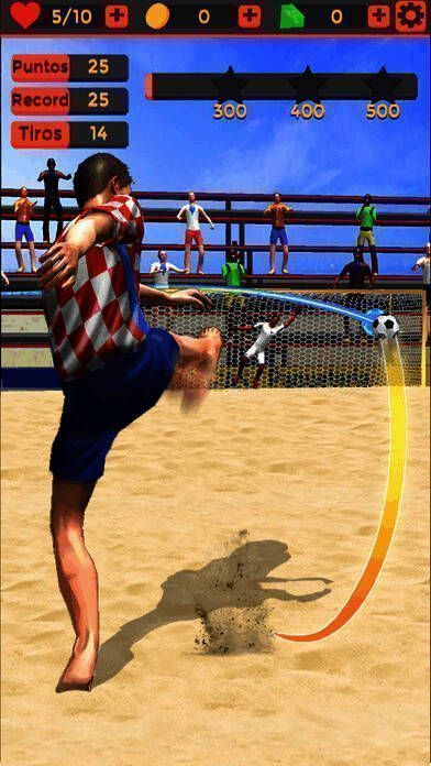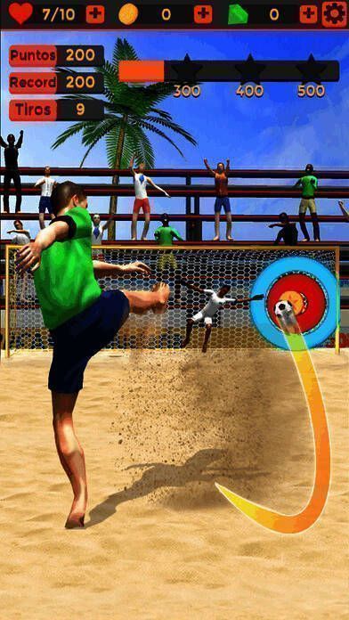 这是一场在阳光沙滩上进行的足球比赛。你要把球射向目标,同时避开守门员或障碍物;通过穿过圆环或击中两极来增加分数。游戏首个关卡的门将是新手,但随着关卡推进,进球会越来越难。在比赛中挑战对手,你能获得杯子碎片,集满杯子后,就能开启新的征程去争夺另一个杯子。