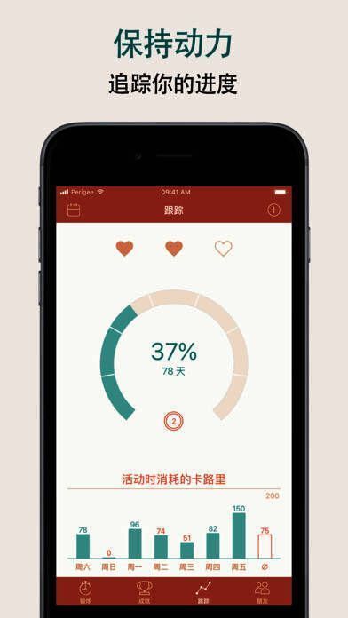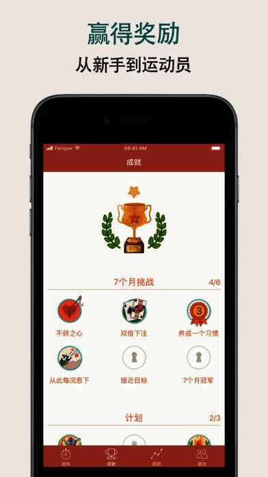 4、从新手到运动员级别,随锻炼进程升级并收获成就;