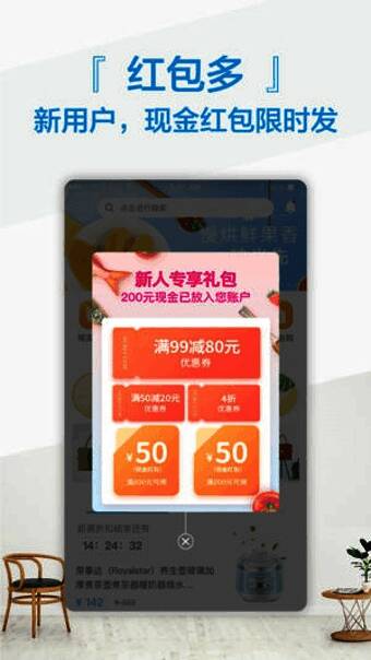 【红包多】新用户可限时领取现金红包,邀请朋友还能立刻获得购物金。