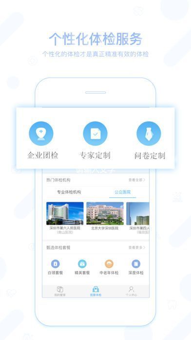 - 我要体检:量身定制体检方案,让体检真正发挥价值,避免漏检、过度体检等问题。