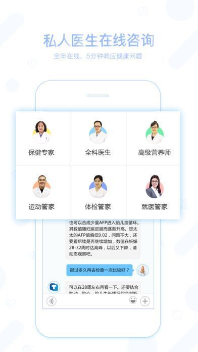 - 管家在线:管家团队全年无休在线咨询,5分钟内响应你的健康问题,让你告别网络自诊的困扰。