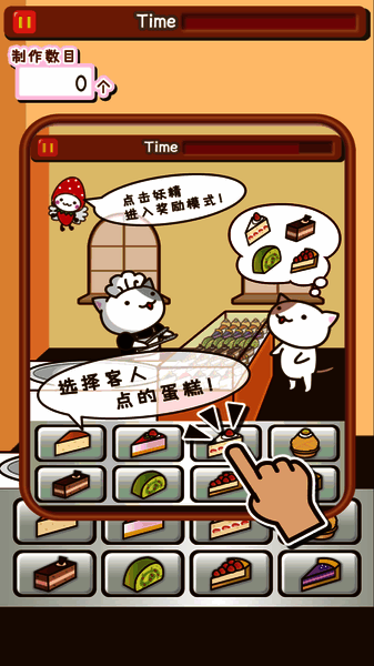 这是一款日系卡通风格的休闲街机手游。游戏中,玩家化身猫咪蛋糕店店长,依照顾客需求,快速递上对应蛋糕,还能点击草莓精灵进入饿猫模式,尽力获取更高分数。