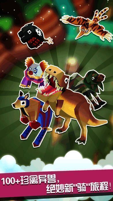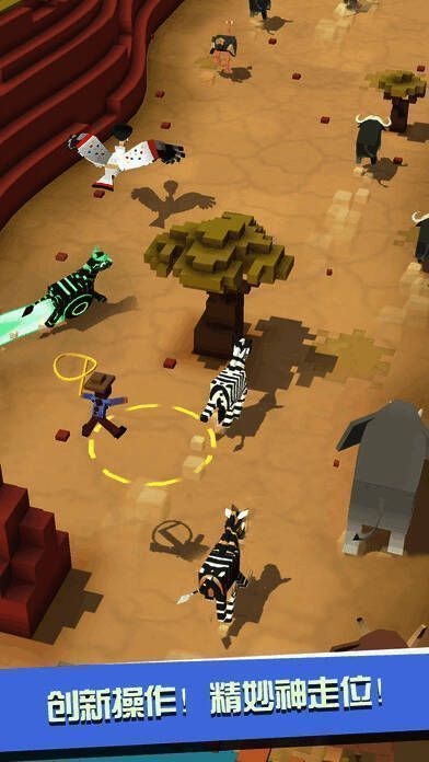 你可以获得新伙伴,选个好角度拍照留念,还能给可爱的小动物取个有趣的名字。主角要在不同地图场景中急速奔跑,用手中的套索驯服大自然的狂野动物。当跳上未被驯服的动物时,头顶会出现心型进度条,进度条充满即捕获成功。野生动物不会轻易顺从,骑上动物后,要在其发怒前跳到其他动物身上。操作时,手指离开屏幕,方块牛仔会进入慢动作,出现套索有效范围,再次触屏即可跃上套住的新动物继续奔跑。随着距离增加,障碍物增多、速度变快,套索会逐渐变小,不仅要反应快、操作准,还得掌握小诀窍。骑乘过久动物会发狂,动物多时可骑狮子、鳄鱼撞击动物避障碍,骑大猩猩则要撞击障碍物避动物。合理利用动物特性,能跑出高分,让跑酷更有趣。