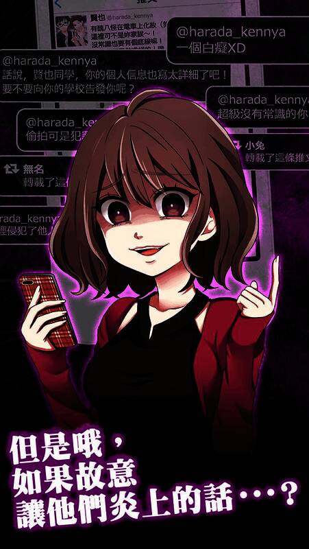 《炎上中》是一款独具创意的文字冒险游戏。它为玩家打造了一个虚拟的“推特”平台,在日本,“推特”十分流行,类似中国的微博,二者都存在乌烟瘴气的骂战现象,尽管大家都明白骂战不好,但依旧屡见不鲜。玩家在游戏里扮演骂战挑拨者。