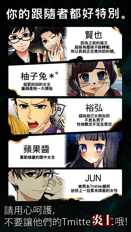 1、在虚构社交网站“Tmitter”上转载或发布能引发他人争吵的话题。