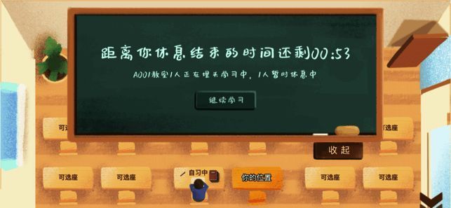 专注学习时,你认真埋头,可能会收到教室内同学的加油鼓励,这将成为你前行的动力。休息时,你可以在教室逛逛,查看其他同学的备考目标和自习信息,并为他们加油。