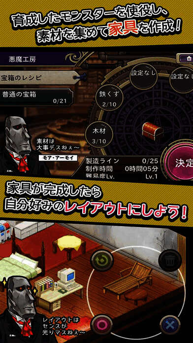 故事设定为玩家在魔界迷路后,摇身一变成为魔界最伟大的人物,代替逃走的魔王统治魔界。不仅会收到逃走魔王发来的任务,还要照顾可爱的部下,打造属于自己的魔界。玩家最多可使用300只魔物娘,还能命令她们收集素材制作家具。