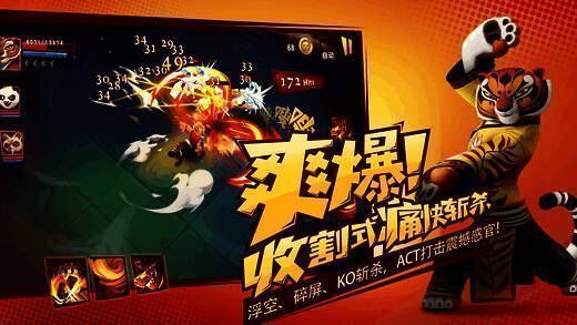 【爽爆!收割式痛快斩杀】浮空、碎屏、斩杀等花样ACT技能,搭配各式必杀KO大招,虐怪超刺激。【刺激!花样探索地宫】闯关旅程穿插花式吊打、潜入击杀等玩法,还有打地鼠、吃豆人等逗趣玩法。【机智!三角色车轮战上阵】阿宝、悍娇虎、师父轮番出战,经典电影角色变身宝宝亲密助战。