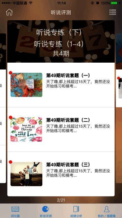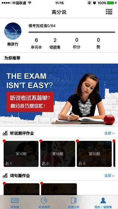 1、具备英语听说智能测评与权威命题功能,就像一位24小时在线的私人听说考试教练;