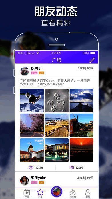 3、动态广场,可了解帅哥美女们的生活点滴。