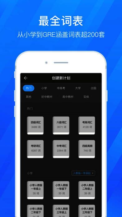 1、最全词表:全面覆盖初中、高中、四级、六级、考研、托福、雅思、专四、专八、SAT、GRE、GMAT、托业等各类词表。