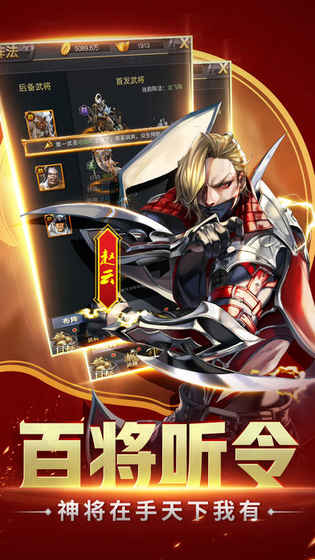 《神将三国》以东汉末年三国时期的历史为蓝本打造策略游戏。在这里,你可以收集各种神兵,招募诸多武将,百种特效组合定能让你眼前一亮。玩家能扮演并招募自己心仪的英雄角色,在游戏中运筹帷幄,决胜千里,完成统一大业!