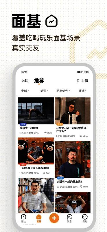 「面基」:这里有成千上万的约会活动,你可根据兴趣爱好发起活动寻找趣味相投的朋友,也能挑选想参加的活动,还能参加关注的人发起的活动。