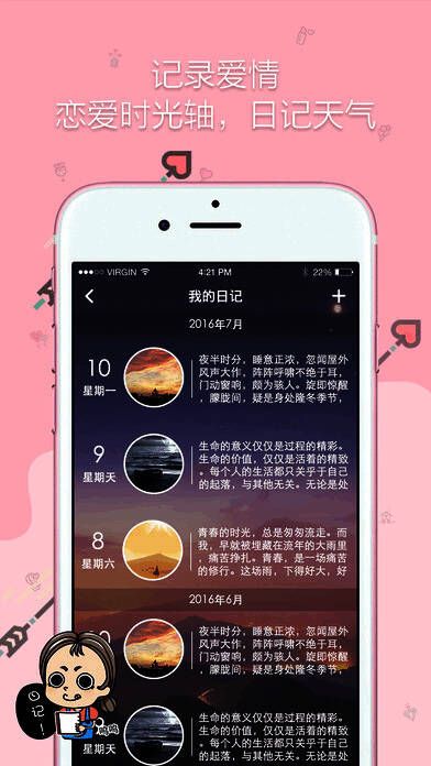 一起记录你们的爱情故事吧!《亲爱的》具备独特的情侣日记功能,情侣双方能够共同撰写专属日记,记录彼此相处的点点滴滴,让自己真切感受爱情的历程,时刻铭记对方的好!更多精彩功能等你探索!