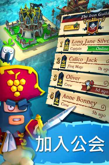 6、可与好友一起加入海盗公会,使用公会设施,在公会聊天室谋划发展。