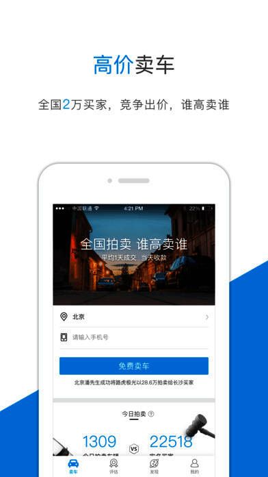 1、高价卖车:全国数万买家实时竞拍,出价高者获得车辆。
