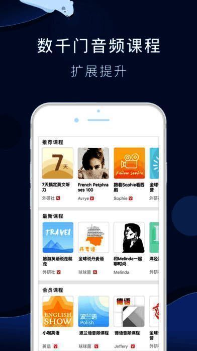 4. 课程丰富,大量音频课程可随意学习,快捷登录方便,随时开启学习。