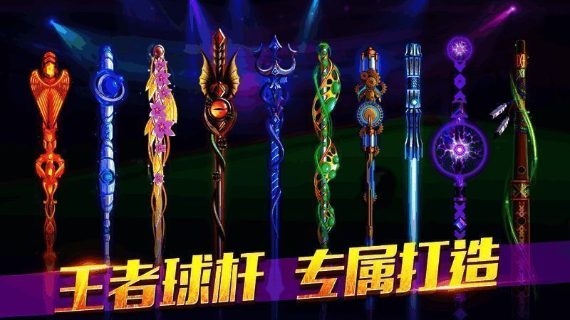 球杆色彩丰富,不同关卡的球杆在形状、瞄准线和属性上各有不同。