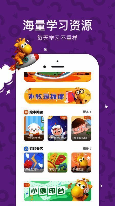 丰富的教学内容助力零基础孩子感受英语魅力,培养学习兴趣。生动有趣的课程、活泼的外教、原创故事专区和好玩的游戏一应俱全。专业团队创作故事并手绘呈现。