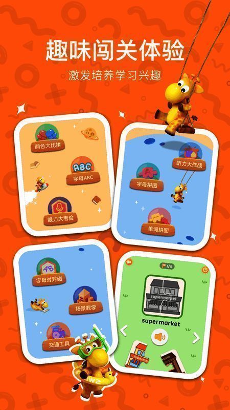 游戏专区:不同年龄段的游戏分为听、说、读、写四类,包含字母识别、单词发音、节日教学等游戏,让孩子在放松中培养英语学习乐趣。